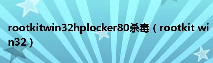 大家好,小问来为大家解答以上问题。rootkitwin32hplocker80杀毒,rootkit win32这个很多人还不知道,现在让我们一起来看看吧!