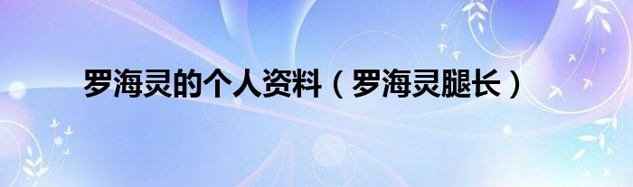 以上就是【罗海灵的个人资料,罗海灵腿长】相关内容。