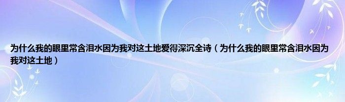 以上就是【为什么我的眼里常含泪水因为我对这土地爱得深沉全诗,为什么我的眼里常含泪水因为我对这土地】相关内容。