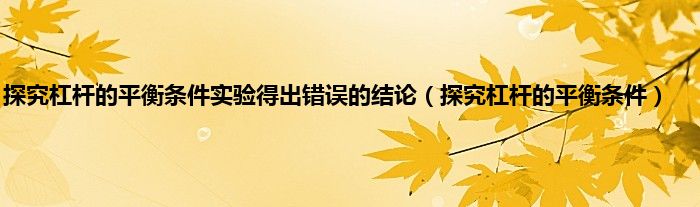 以上就是【探究杠杆的平衡条件实验得出错误的结论,探究杠杆的平衡条件】相关内容。