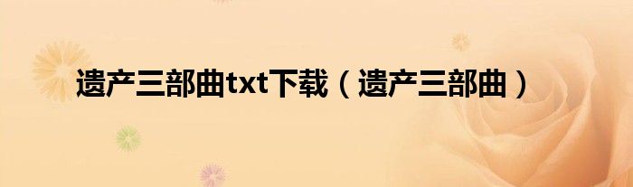 大家好,小问来为大家解答以上问题。遗产三部曲txt下载,遗产三部曲这个很多人还不知道,现在让我们一起来看看吧!