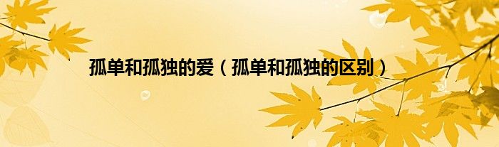 以上就是【孤单和孤独的爱,孤单和孤独的区别】相关内容。