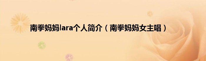 以上就是【南拳妈妈lara个人简介,南拳妈妈女主唱】相关内容。