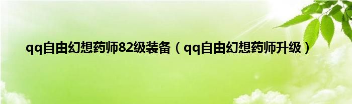 大家好,小问来为大家解答以上问题。qq自由幻想药师82级装备,qq自由幻想药师升级这个很多人还不知道,现在让我们一起来看看吧!