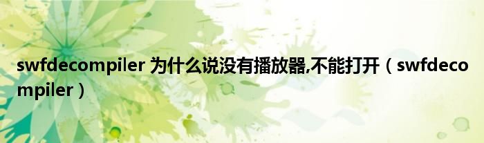 以上就是【swfdecompiler 为什么说没有播放器,不能打开,swfdecompiler】相关内容。