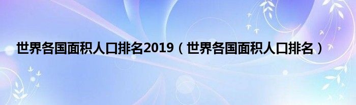 以上就是【世界各国面积人口排名2019,世界各国面积人口排名】相关内容。