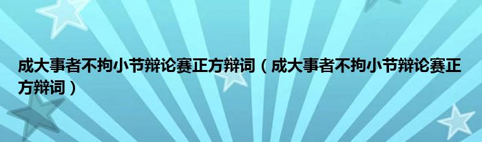 大家好,小问来为大家解答以上问题。成大事者不拘小节辩论赛正方辩词,成大事者不拘小节辩论赛正方辩词这个很多人还不知道,现在让我们一起来看看吧!