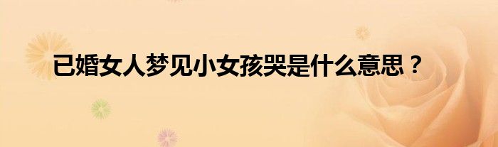 大家好,综合小编来为大家讲解下。已婚女人梦见小女孩哭是什么意思?这个很多人还不知道,现在让我们一起来看看吧!