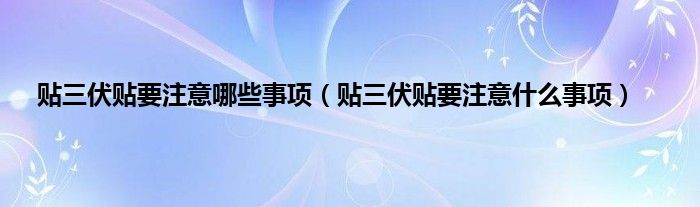本文,贴三伏贴要注意哪些事项,贴三伏贴要注意什么事项到此就分享完毕,希望对大家有所帮助。