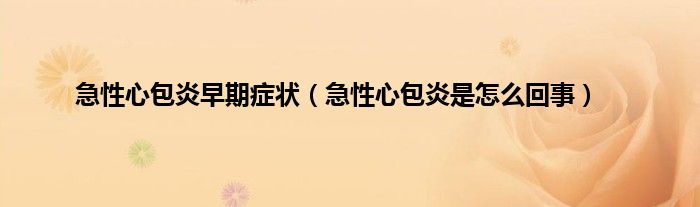 大家好,急性心包炎早期症状,急性心包炎是怎么回事很多人还不知道,现在让我们一起来看看吧!