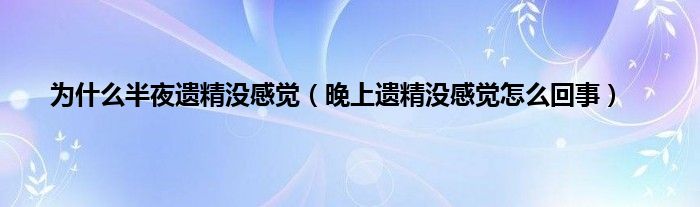 本文,为什么半夜遗精没感觉,晚上遗精没感觉怎么回事到此就分享完毕,希望对大家有所帮助。