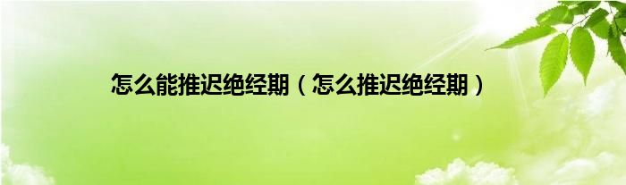 本文,怎么能推迟绝经期,怎么推迟绝经期到此就分享完毕,希望对大家有所帮助。