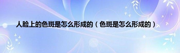 大家好,人脸上的色斑是怎么形成的,色斑是怎么形成的很多人还不知道,现在让我们一起来看看吧!