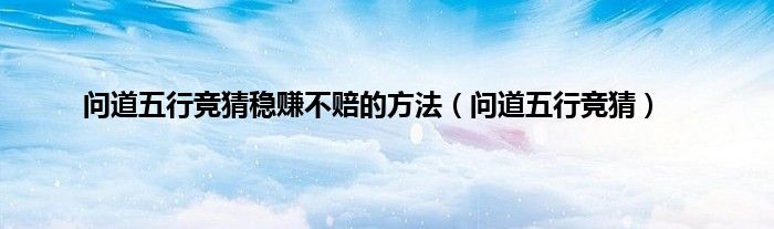 大家好,小问来为大家解答以上问题。问道五行竞猜稳赚不赔的方法,问道五行竞猜这个很多人还不知道,现在让我们一起来看看吧!