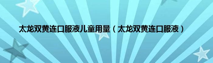 以上就是【太龙双黄连口服液儿童用量,太龙双黄连口服液】相关内容。