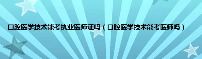 大家好,小问来为大家解答以上问题。口腔医学技术能考执业医师证吗,口腔医学技术能考医师吗这个很多人还不知道,现在让我们一起来看看吧!