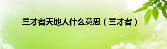 以上就是【三才者天地人什么意思,三才者】相关内容。