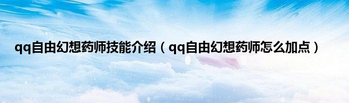 以上就是【qq自由幻想药师技能介绍,qq自由幻想药师怎么加点】相关内容。
