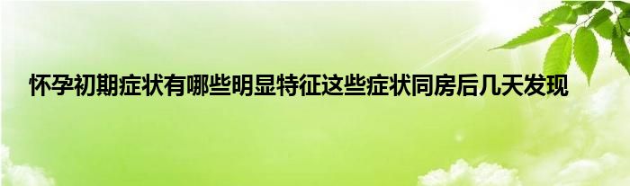 本文,怀孕初期症状有哪些明显特征这些症状同房后几天发现到此就分享完毕,希望对大家有所帮助。