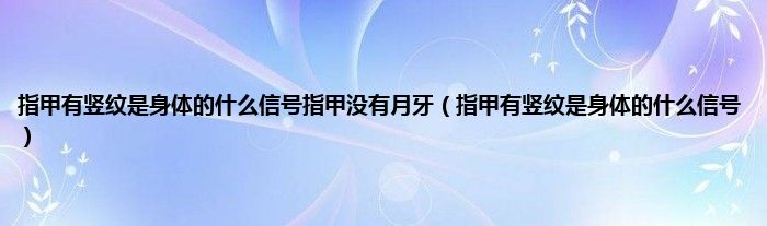 本文,指甲有竖纹是身体的什么信号指甲没有月牙,指甲有竖纹是身体的什么信号到此就分享完毕,希望对大家有所帮助。
