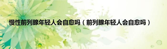 本文,慢性前列腺年轻人会自愈吗,前列腺年轻人会自愈吗到此就分享完毕,希望对大家有所帮助。