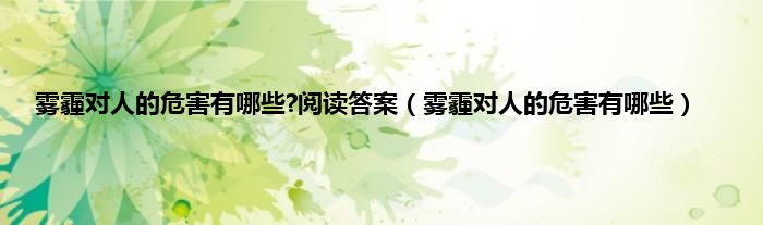 本文,雾霾对人的危害有哪些?阅读答案,雾霾对人的危害有哪些到此就分享完毕,希望对大家有所帮助。
