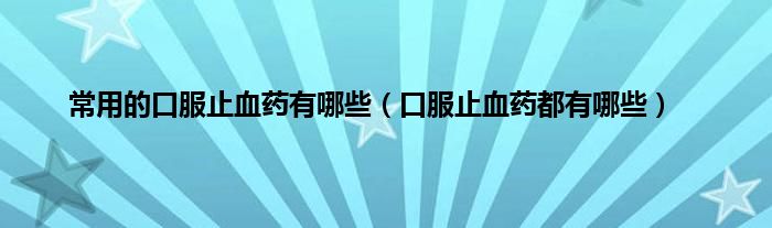 本文,常用的口服止血药有哪些,口服止血药都有哪些到此就分享完毕,希望对大家有所帮助。