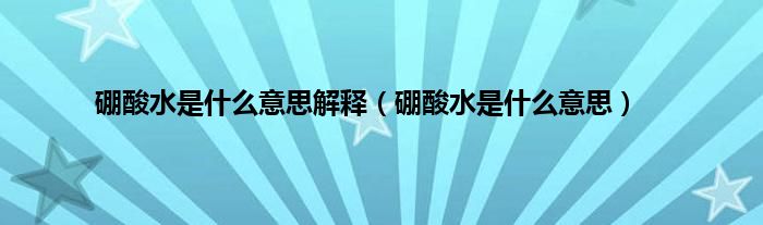本文,硼酸水是什么意思解释,硼酸水是什么意思到此就分享完毕,希望对大家有所帮助。