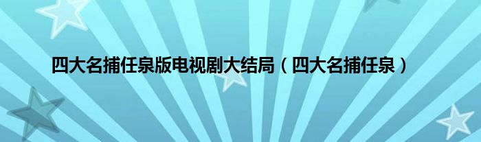 大家好,小问来为大家解答以上问题。四大名捕任泉版电视剧大结局,四大名捕任泉这个很多人还不知道,现在让我们一起来看看吧!