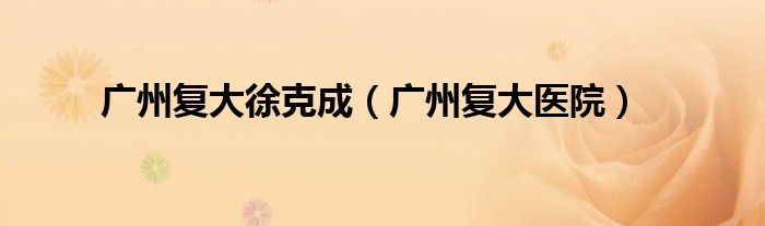 大家好,小问来为大家解答以上问题。广州复大徐克成,广州复大医院这个很多人还不知道,现在让我们一起来看看吧!