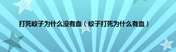 大家好,小问来为大家解答以上问题。打死蚊子为什么没有血,蚊子打死为什么有血这个很多人还不知道,现在让我们一起来看看吧!