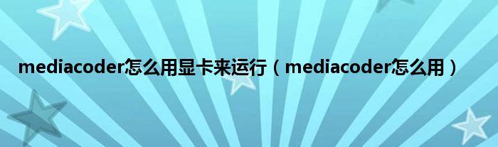 大家好,小问来为大家解答以上问题。mediacoder怎么用显卡来运行,mediacoder怎么用这个很多人还不知道,现在让我们一起来看看吧!
