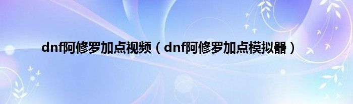 以上就是【dnf阿修罗加点视频,dnf阿修罗加点模拟器】相关内容。