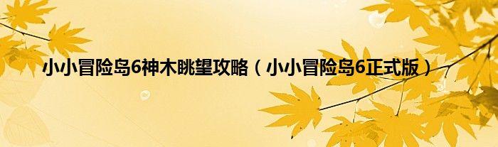 大家好,小问来为大家解答以上问题。小小冒险岛6神木眺望攻略,小小冒险岛6正式版这个很多人还不知道,现在让我们一起来看看吧!