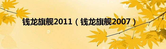 大家好,小问来为大家解答以上问题。钱龙旗舰2011,钱龙旗舰2007这个很多人还不知道,现在让我们一起来看看吧!