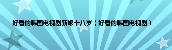 大家好,小问来为大家解答以上问题。好看的韩国电视剧新娘十八岁,好看的韩国电视剧这个很多人还不知道,现在让我们一起来看看吧!