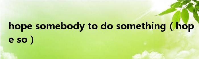 大家好,小问来为大家解答以上问题。hope somebody to do something,hope so这个很多人还不知道,现在让我们一起来看看吧!