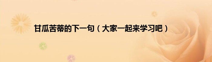 本文,甘瓜苦蒂的下一句,大家一起来学习吧到此就分享完毕,希望对大家有所帮助。