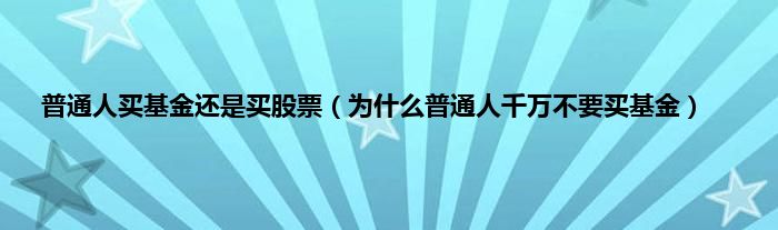 普通人买基金还是买股票(为什么普通人千万不要买基金)