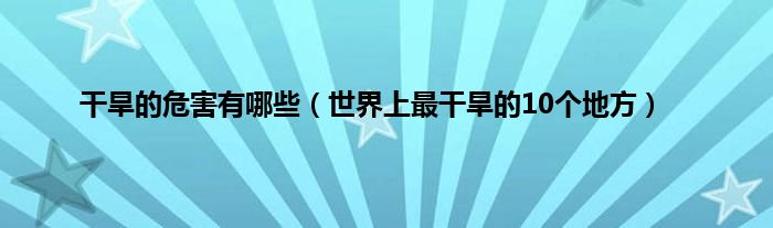 本文,干旱的危害有哪些,世界上最干旱的10个地方到此就分享完毕,希望对大家有所帮助。