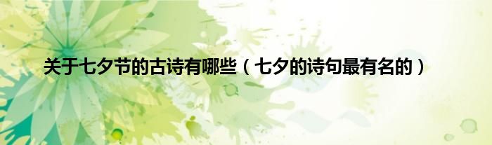 本文,关于七夕节的古诗有哪些,七夕的诗句最有名的到此就分享完毕,希望对大家有所帮助。