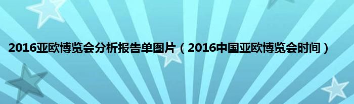 大家好,2016亚欧博览会分析报告单图片,2016中国亚欧博览会时间很多人还不知道,现在让我们一起来看看吧!
