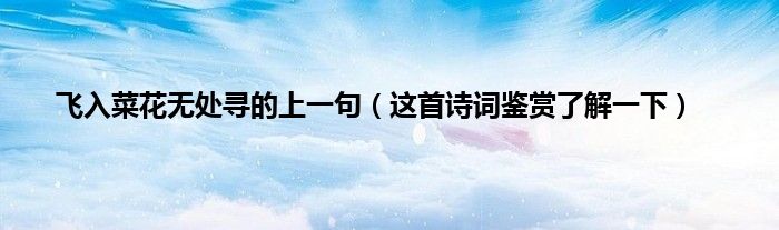 本文,飞入菜花无处寻的上一句,这首诗词鉴赏了解一下到此就分享完毕,希望对大家有所帮助。