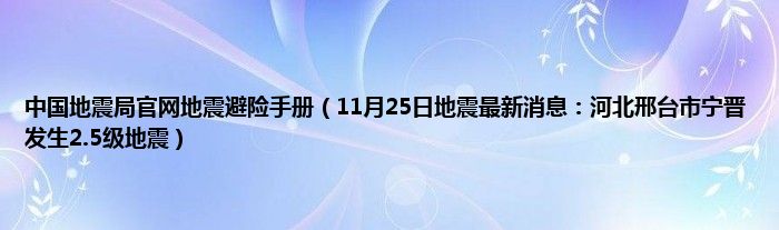 大家好,中国地震局官网地震避险手册,11月25日地震最新消息:河北邢台市宁晋发生2.5级地震很多人还不知道,现在让我们一起来看看吧!
