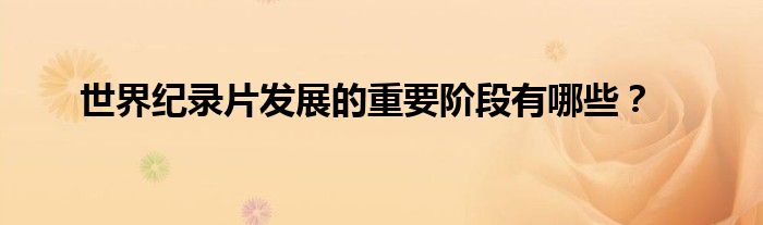 大家好,世界纪录片发展的重要阶段有哪些?很多人还不知道,现在让我们一起来看看吧!