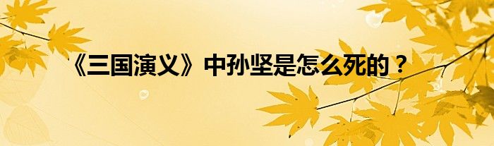 大家好,《三国演义》中孙坚是怎么死的?很多人还不知道,现在让我们一起来看看吧!