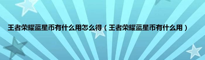 本文,王者荣耀蓝星币有什么用怎么得,王者荣耀蓝星币有什么用到此就分享完毕,希望对大家有所帮助。