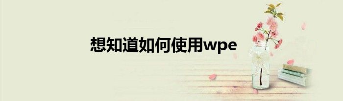 大家好,想知道如何使用wpe很多人还不知道,现在让我们一起来看看吧!