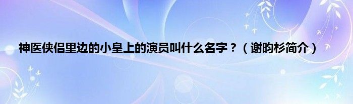 大家好,神医侠侣里边的小皇上的演员叫什么名字?,谢昀杉简介很多人还不知道,现在让我们一起来看看吧!