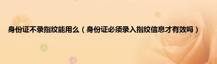 大家好,身份证不录指纹能用么,身份证必须录入指纹信息才有效吗很多人还不知道,现在让我们一起来看看吧!